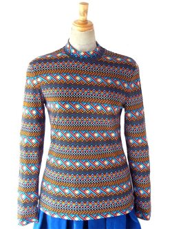 【ヨーロッパ古着】フランス買い付け 70年代製 カラフル X レトロ柄 ロールカラー トップス 25FC313【おとなかわいい】