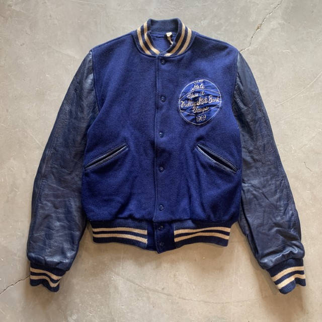 【L/XL 44】60s USA製 GAMEMASTER 袖革スタジャン ジャケット パープル 紫■ビンテージ オールド アメリカ古着 無地