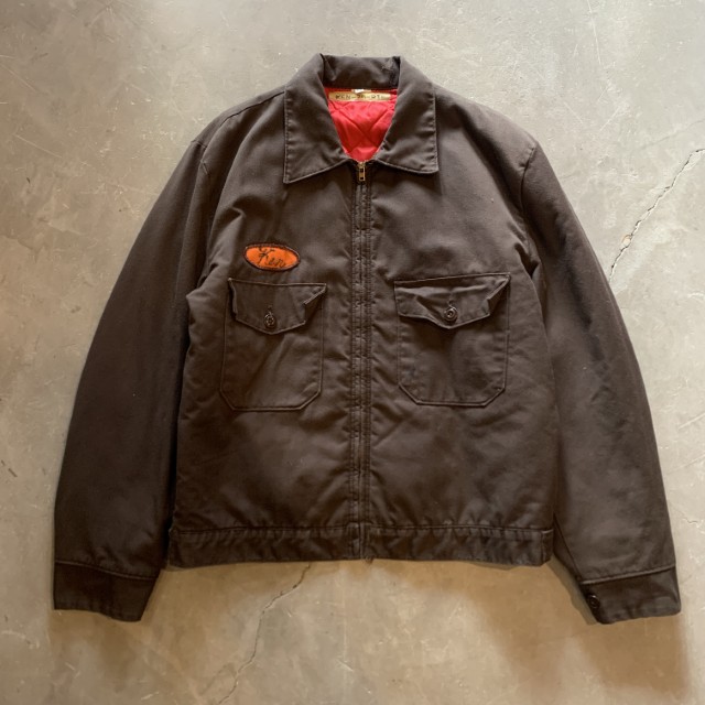 【L/XL 44】70s「Ken」ワッペン付き ワークジャケット ブラウン 茶色■ビンテージ オールド アメリカ古着 ジップ 裏キルティング No.1