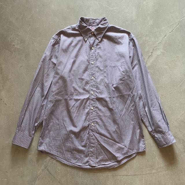 【M/L】Ralph Lauren 長袖ボタンダウンシャツ 白青ストライプ■古着 ポロ ラルフローレン オールコットン 90s