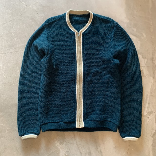 【S or Ladies】60s-70s UNKNOWN アクリルニット ジップカーディガン セーター 深緑■ビンテージ オールド アメリカ古着 レディース