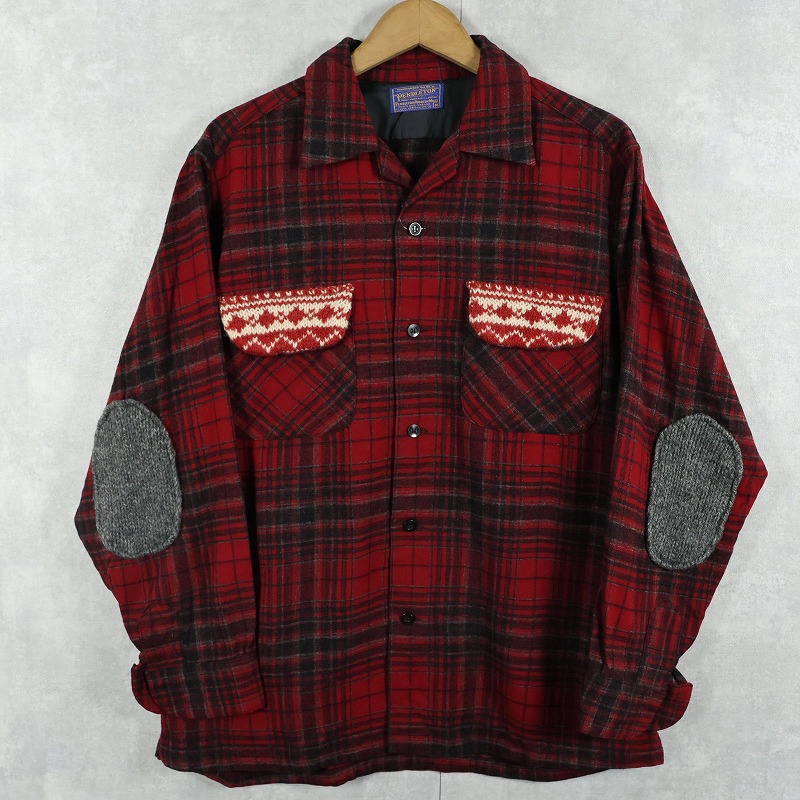 60’s PENDLETON チェック柄 ニット切り替え ウールオープンカラーシャツ M