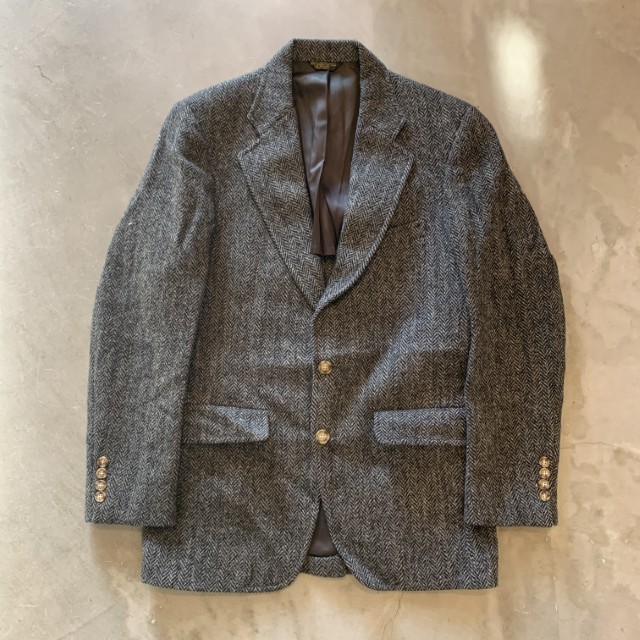 【XS/S】USA製 ハリスツイード ウール テーラードジャケット グレー■ビンテージ オールド レトロ アメリカ古着 ブレザー