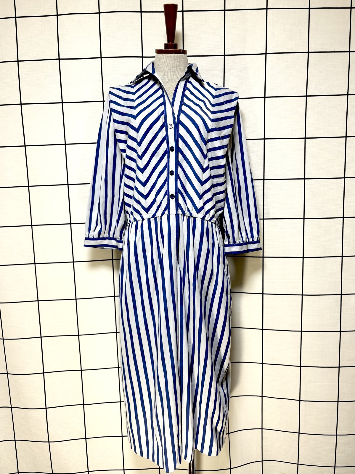 ストライプ ウエストゴム レトロ USA古着 ヴィンテージワンピース