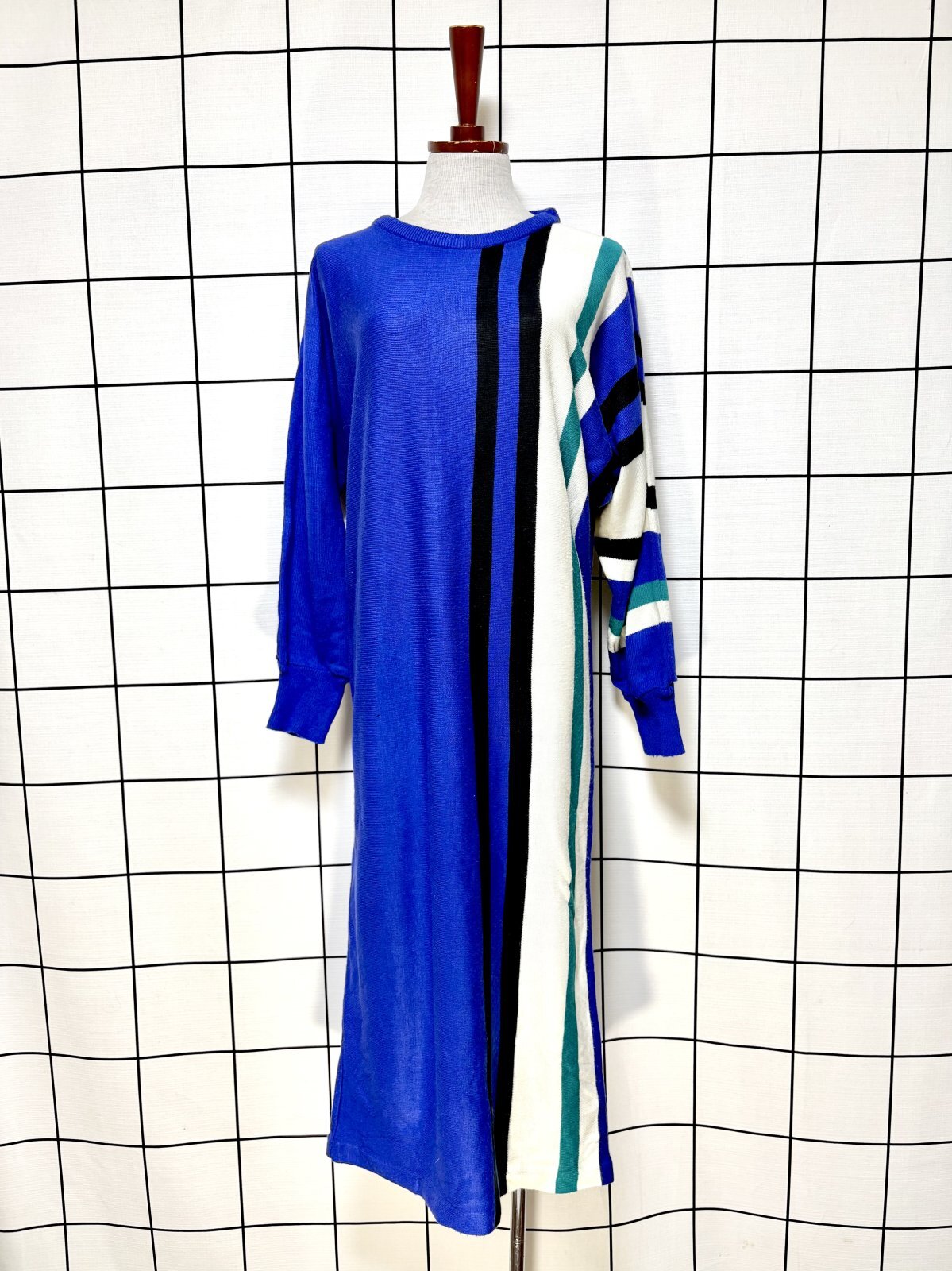 ストライプ模様編み レトロ USA古着 ヴィンテージニットワンピース