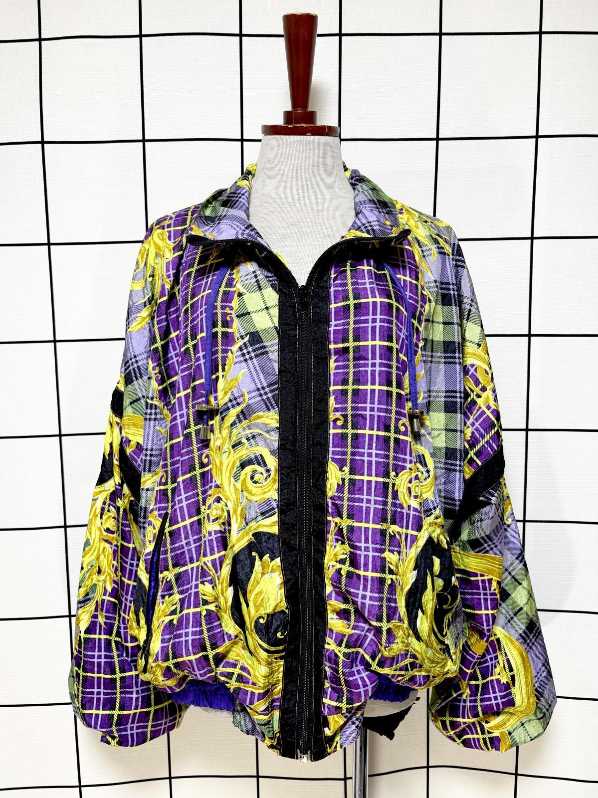チェック柄 花柄 オーバーサイズ ジップアップ レトロ USA古着 ジャンパー ブルゾン ヴィンテージナイロンジャケット