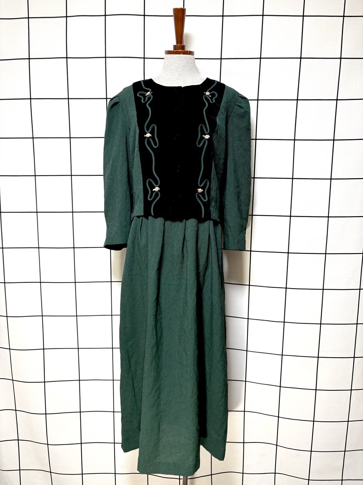 ベルベット切り替え バックリボン レトロ USA古着 ヴィンテージワンピース