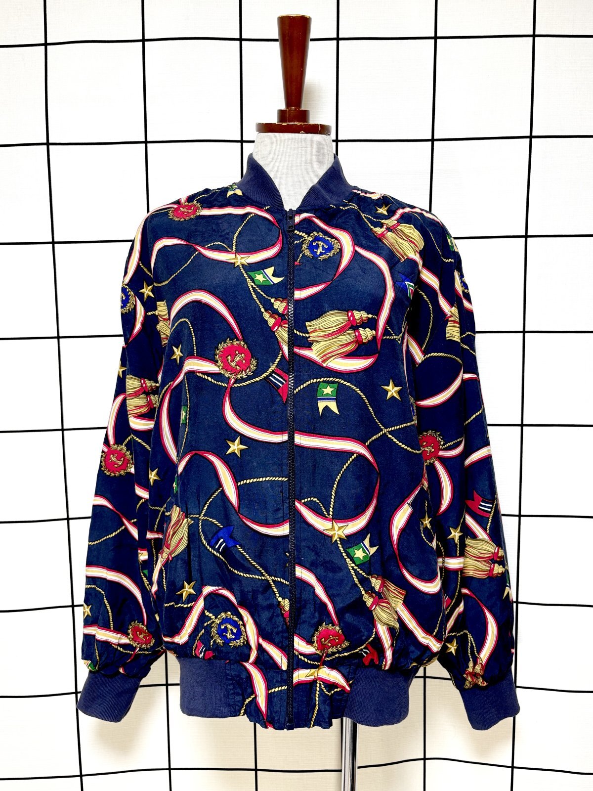 スカーフ柄 ジップアップ レトロ USA古着 ジャンパー ヴィンテージブルゾンジャケット