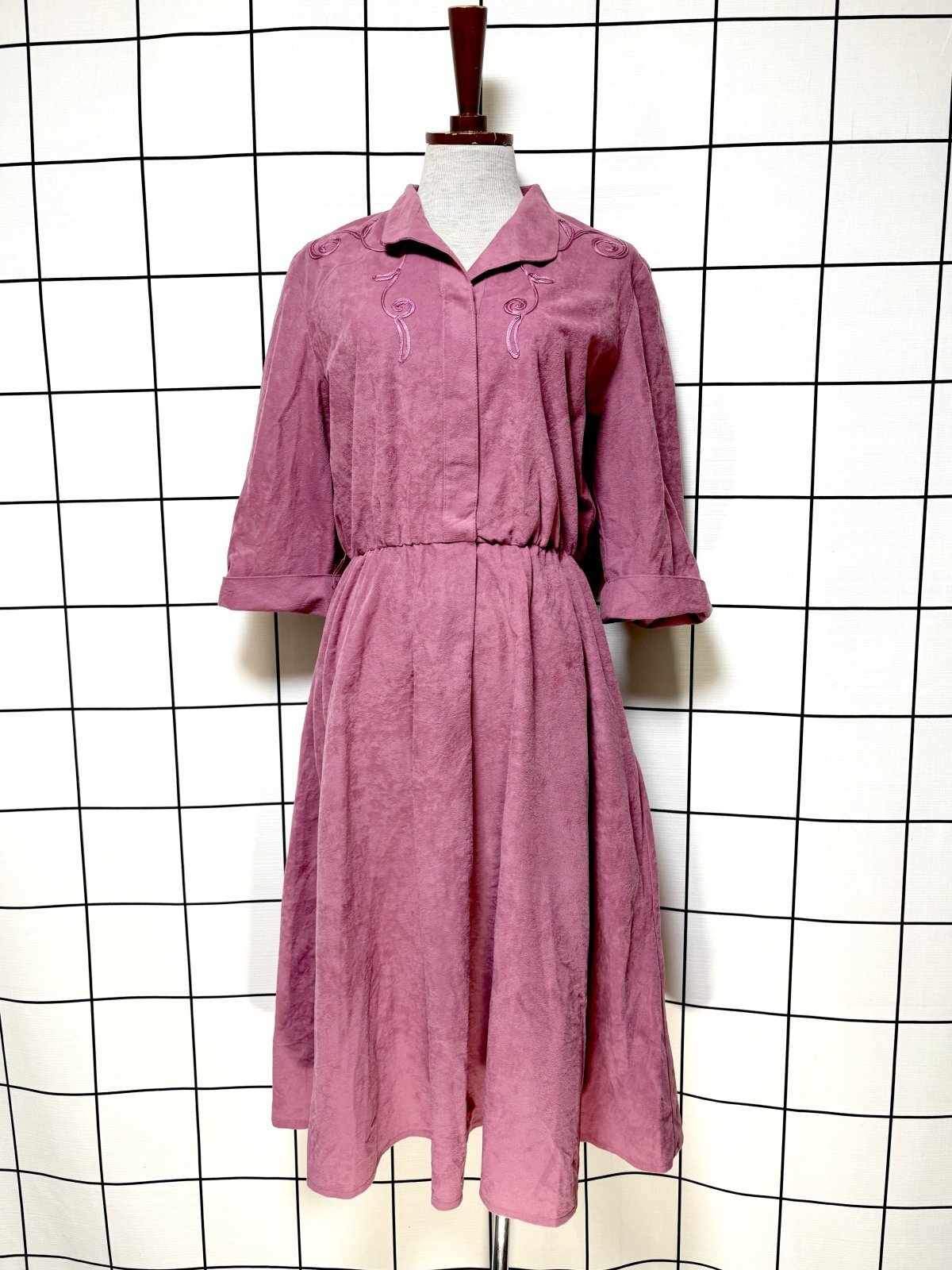 ベロア 無地 レトロ 長袖 USA古着 ヴィンテージワンピース