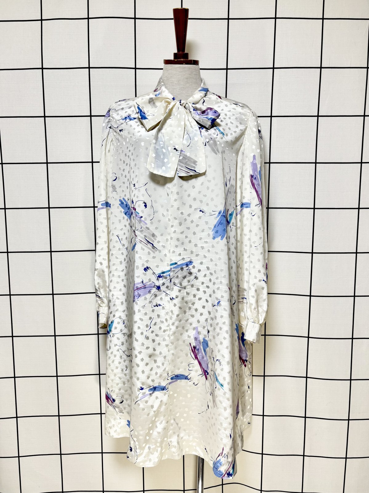 リボンタイ ホワイト アート柄 レトロ USA古着 ヴィンテージワンピース