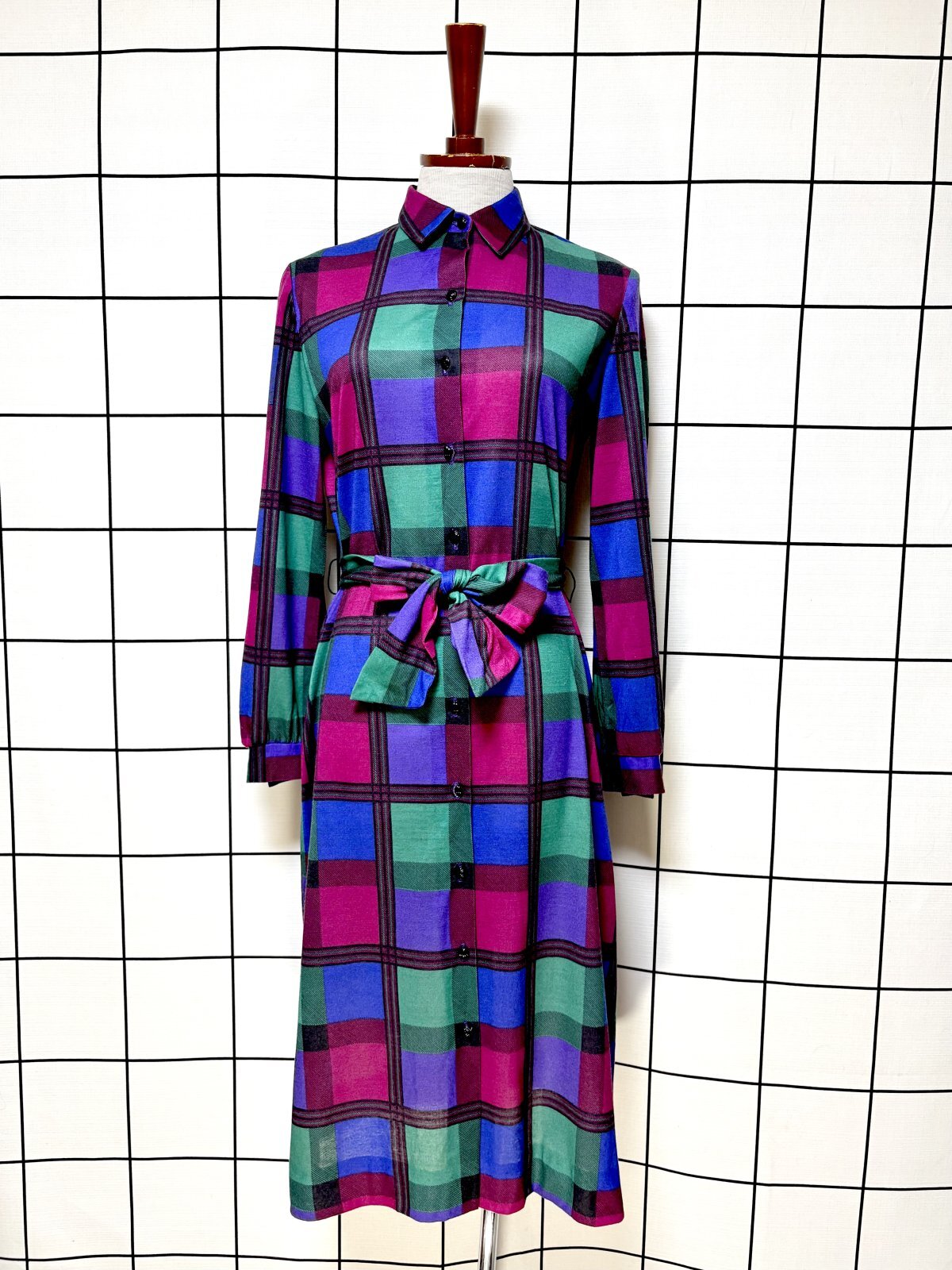 チェック ベルトセット レトロ USA古着 ヴィンテージワンピース