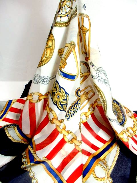 レトロアンティーク ヴィンテージスカーフ ヨーロッパ マリン ネイビー ホワイト【7527】