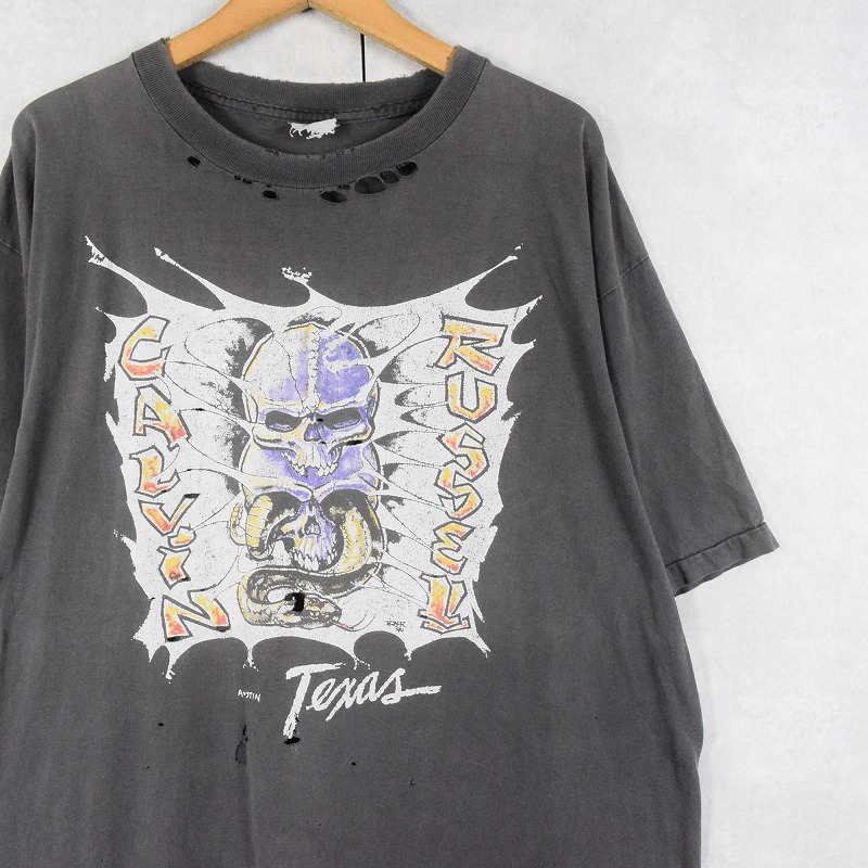90’s Calvin Russell シンガーソングライター スカルプリントTシャツ BLACK
