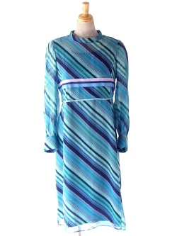 【送料無料】 フランス買い付け 70年代製 ライトアイボリー X ブラウン レトロ柄 ドレープ ワンピース 21FC313【ヨーロッパ古着】