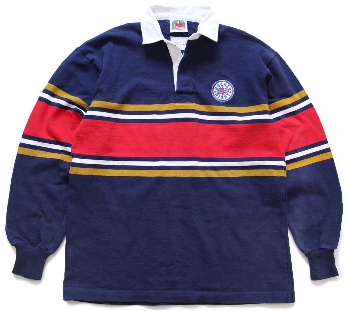 カナダ製 BARBARIANバーバリアン HOCKEY NIGHT in Canada NHL CBC Sports刺繍 コットン ラガーシャツ 紺 XL