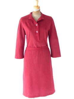 【送料無料】 60年代フランス製 ボルドー X 共布ベルト付き ヴィンテージ ウール・モヘア混 ワンピース 25FC207【ヨーロッパ古着】