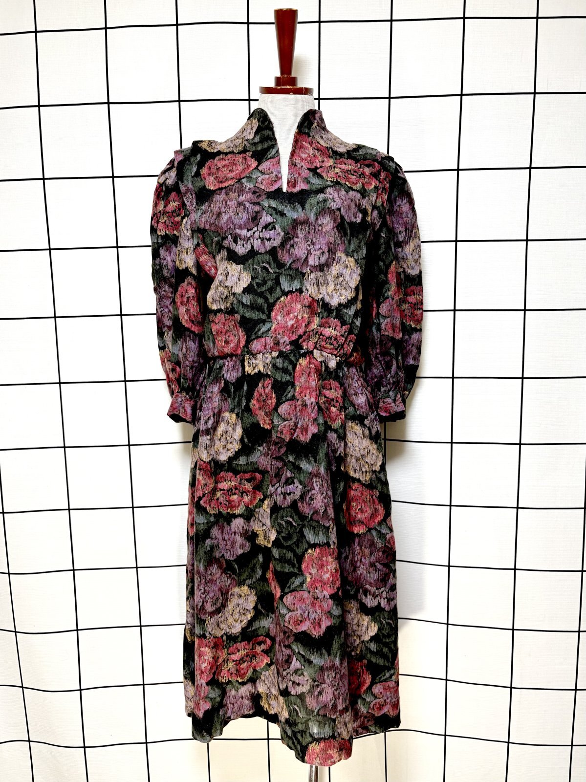 花柄 スタンドカラー ウエストゴム レトロ USA古着 ヴィンテージワンピース