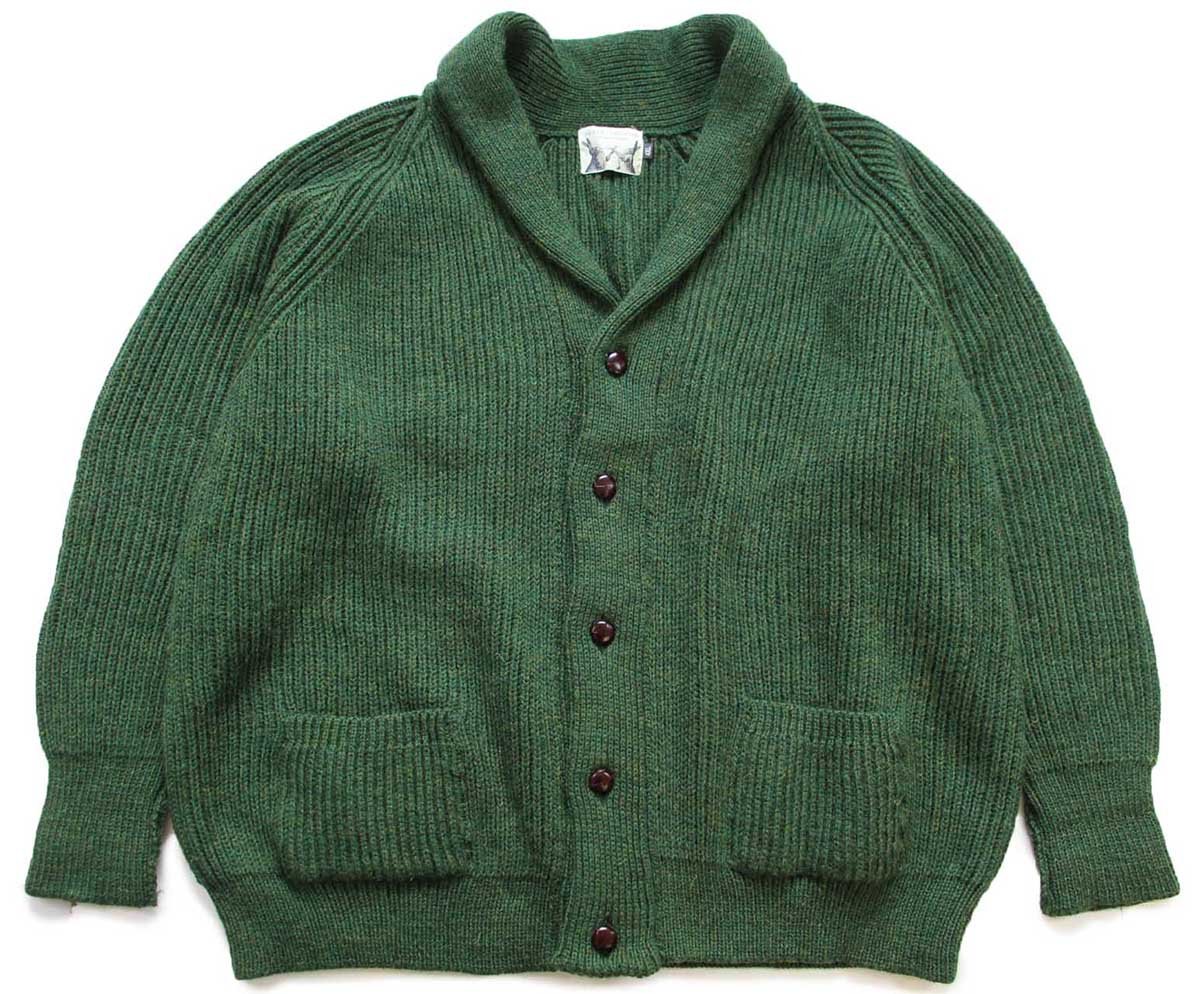 英国製 PETER CHRISTIAN ショールカラー ローゲージ ブリティッシュ ウールニット カーディガン 緑 ミックス 4XL★特大