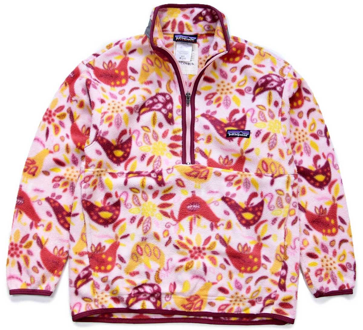 00s patagoniaパタゴニア 総柄 マースピアル ハーフジップ プルオーバー シンチラ フリース KIDS’ M