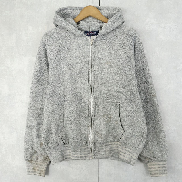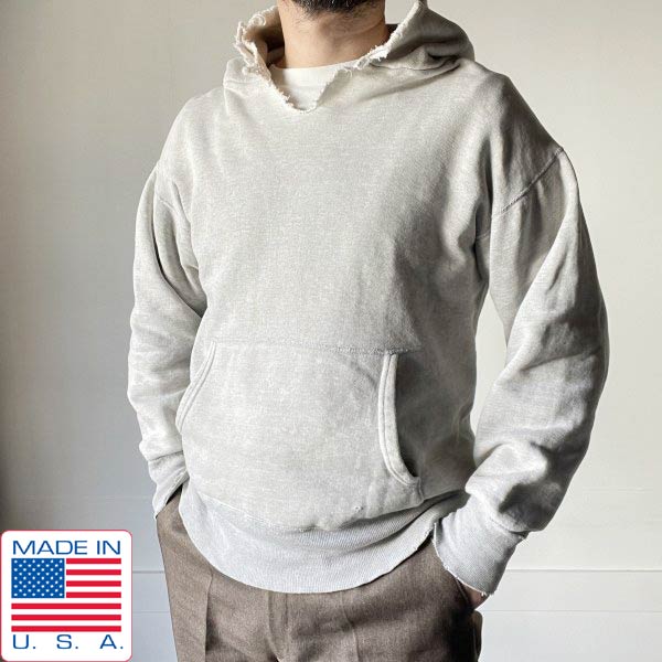 60s USA製 グレー系 ツートン 無地 ボロ スウェット パーカー M-L程度 フーディ ダメージ ブランク アメリカ製 ビンテージ PV