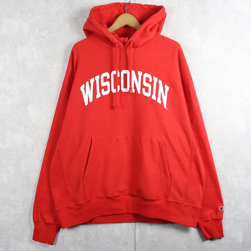 2000’s Champion REVERSE WEAVE “WISCONSIN” プリントスウェットフーディー XL