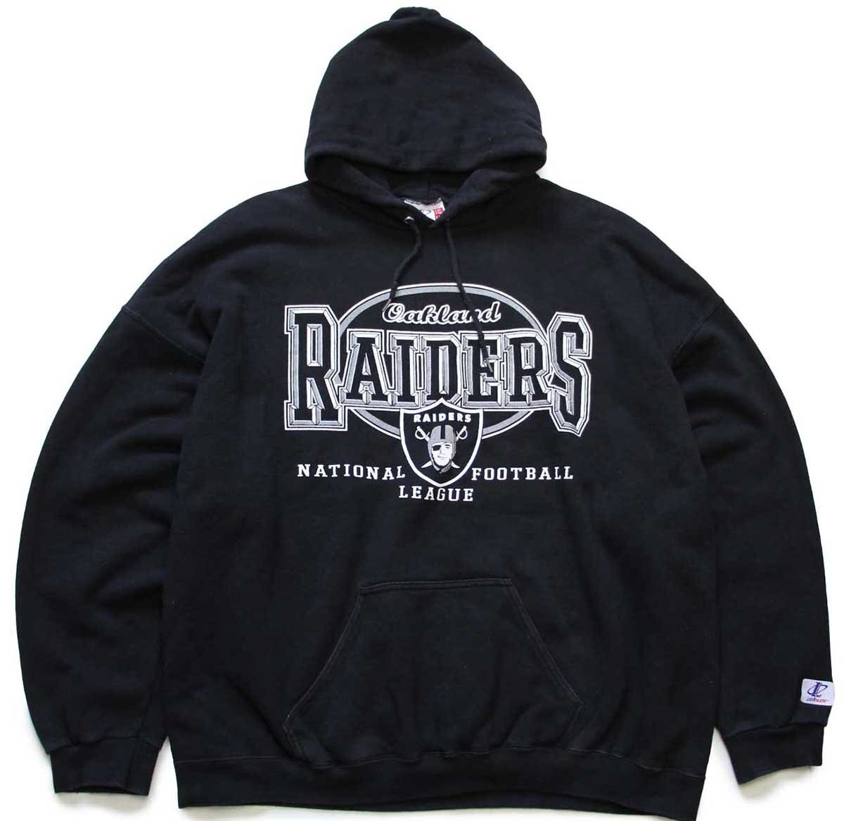 90s USA製 NFL Oakland RAIDERS スウェットパーカー 黒 XXL★特大 フーディー