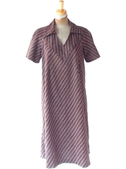 【送料無料】フランス買い付け 60年代製 ブラウン X スレート・レッド ピンストライプ ヴィンテージ ワンピース 25FC208【ヨーロッパ古着】