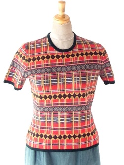 【ヨーロッパ古着】ベルギー製 アーガイル×タータンチェック ヴィンテージ ニット トップス 25FC211【おとなかわいい】