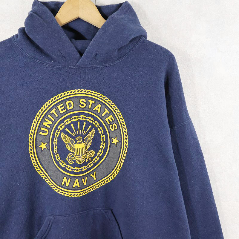90’s SOFFE USA製 “U.S.NAVY” リフレクタープリントスウェットフーディー NAVY L