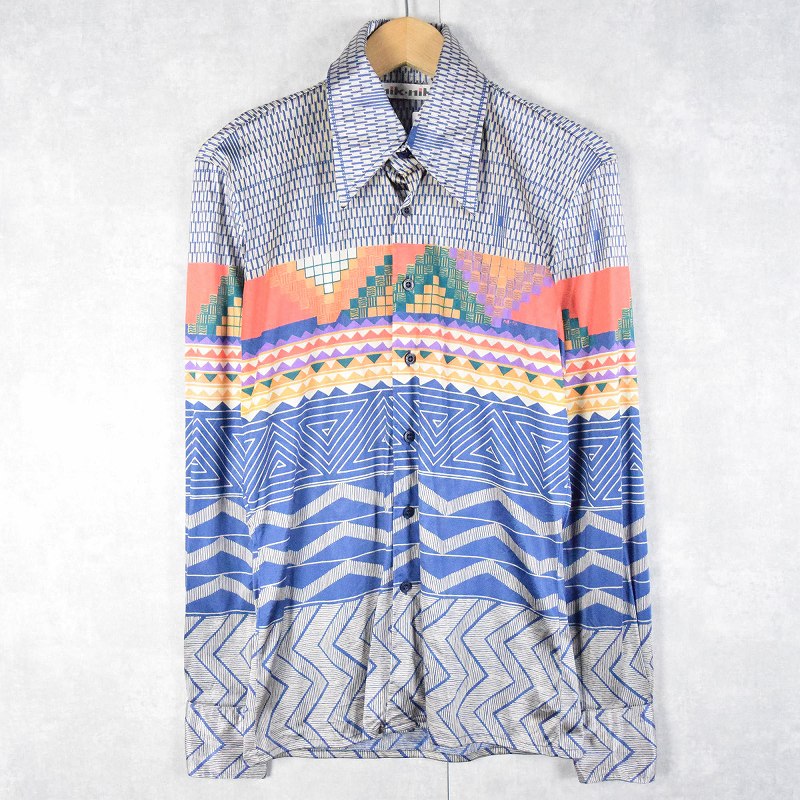 70’s nik-nik ITALY製 総柄 ナイロンシャツ S