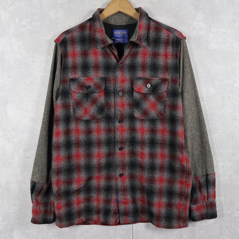 PENDLETON “BOARD SHIRT” チェック柄 エルボーパッチ付き リメイクウールシャツ M