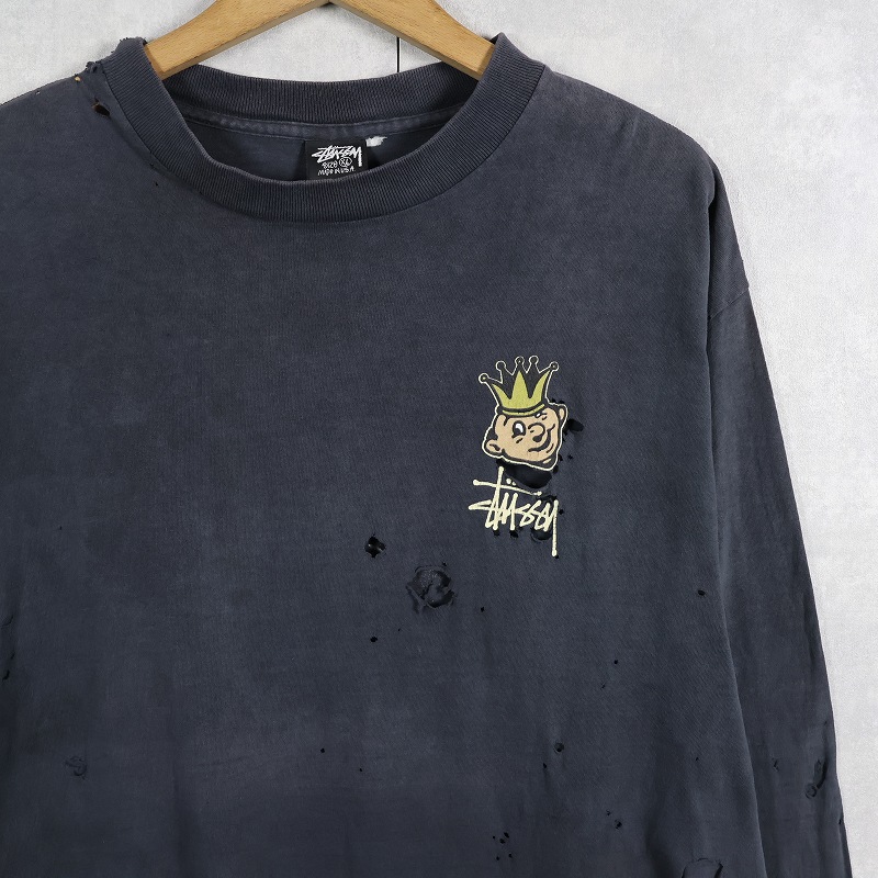 80’s STUSSY 黒タグ USA製 “Crown Pierrot” プリントロンT BLACK XL