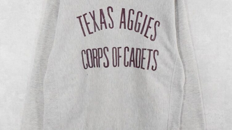 70’s Champion REVERSE WEAVE 赤単色タグ USA製 “TEXAS AGGIES CORPS OF CADETS” ラバープリントスウェット M