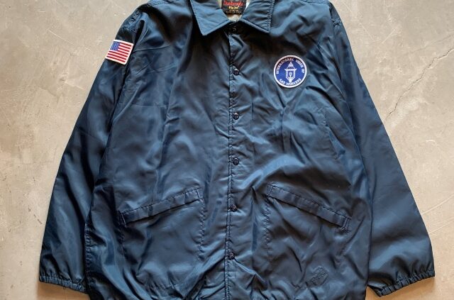 【XL/XXL】80s USA製 Dunbrooke ワッペン ナイロン コーチジャケット ネイビー 紺無地■ビンテージ オールド アメリカ古着 ガソスタ 企業