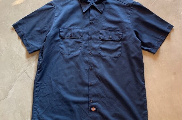 【XL】Dickies 半袖ワークシャツ ネイビー 紺無地■オールド アメリカ古着 ディッキーズ ボックス ビッグサイズ