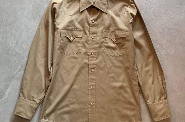【M】70s Western Fashions 長袖ウエスタンシャツ ベージュ 無地■ビンテージ オールド アメリカ古着 カウボーイ スナップボタン