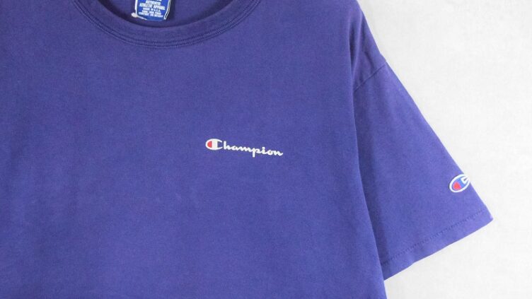 80〜90’s Champion USA製 青刺繍タグ 後期 ロゴプリントTシャツ NAVY L