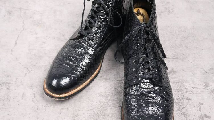 90’s〜 STACY-ADAMS 型押しクロコ レザーブーツ BLACK 29.5cm