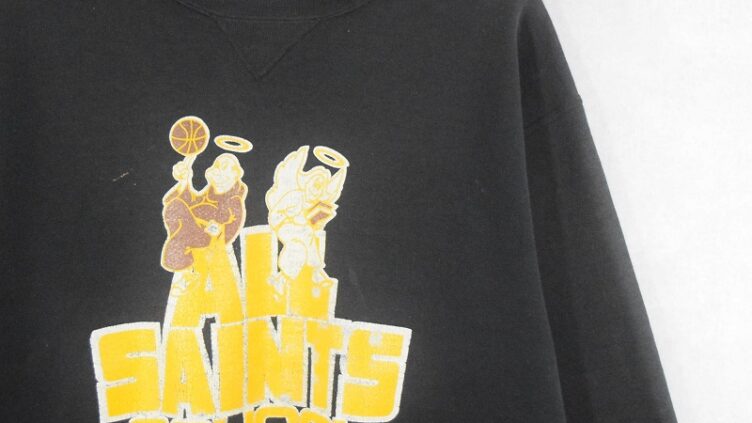 90’s RUSSELL ATHLETIC USA製 “ALL SAINTS SCHOOL” 前V プリントスウェット BLACK