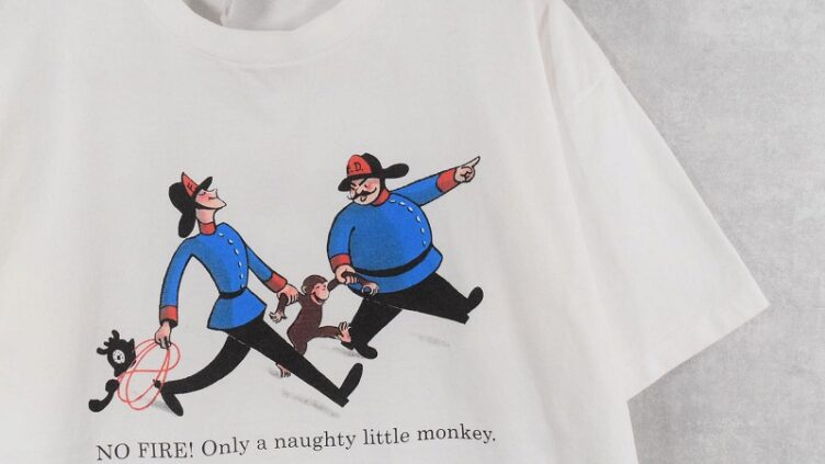 90’s Curious George “NO FIRE! Only a naughty…” キャラクタープリントTシャツ XL