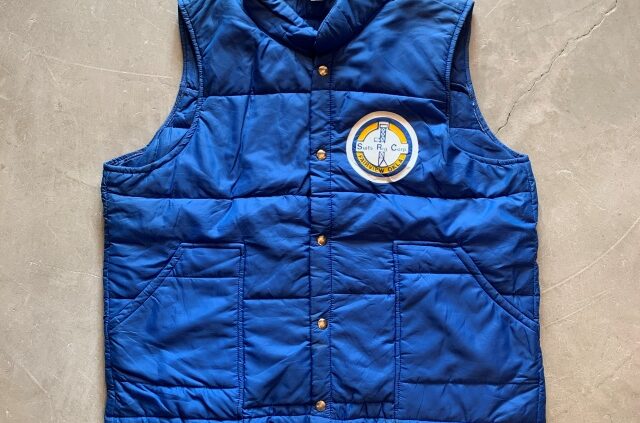 【XL】USA製 80s ナイロン 中綿ダウンベスト レーシング ブルー 青■ビンテージ オールド レトロ アメリカ古着 ビッグサイズ