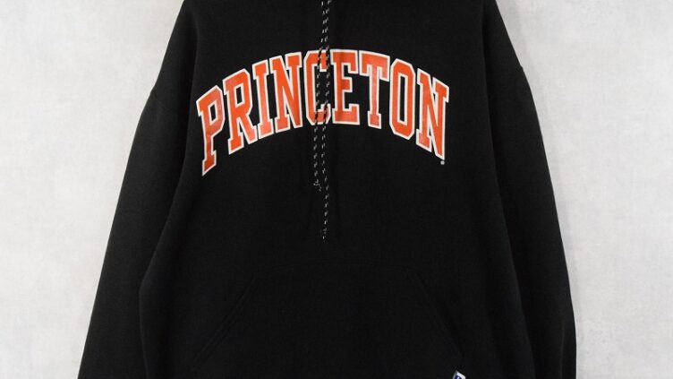 90’s RUSSELL ATHLETIC USA製 “PRINCETON” プリントスウェットフーディー BLACK L