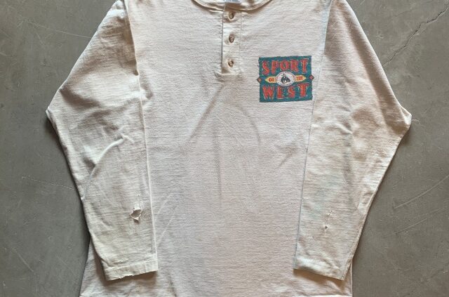 【L】ボロ 90s USA製 Anvil ヘンリーネック 長袖Tシャツ■ビンテージ オールド アメリカ古着 ロンT カウボーイ ロデオ ウエスタン