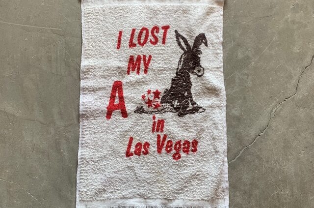 【45cm×29cm】I LOST MY A☆ in Las Vegas ハンドタオル 白■ビンテージ アンティーク レトロ インテリア ロバ ラスベガス タペストリー