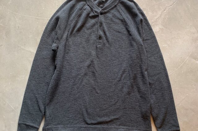 【L】Banana Republic ヘンリーネック サーマルシャツ ダークグレー■アメリカ古着 バナナリパブリック ロンT コットンニット