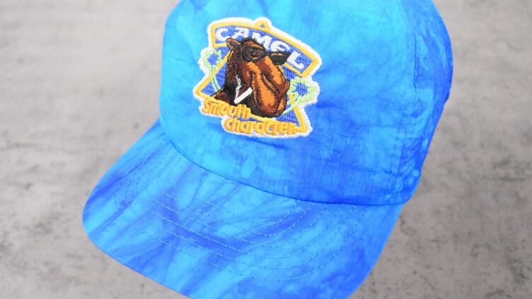 〜90’s CAMEL タバコ企業 タイダイ キャラクターロゴ刺繍 ナイロンスナップバックキャップ