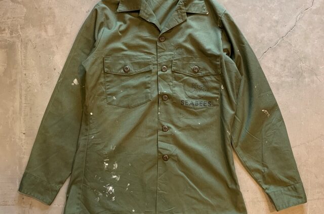 JACK CLOTHING SUPPLY【M 15 1/2】80s 米軍実物 ユーティリティシャツジャケット オリーブ■ビンテージ オールド アメリカ古着 USN ミリタリー シービーズ No.1