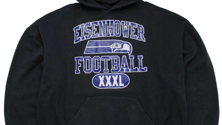 Sixpacjoe00s メキシコ製 RUSSELLラッセル EISENHOWER FOOTBALL 四段プリント スウェットパーカー 黒 XXXL★特大