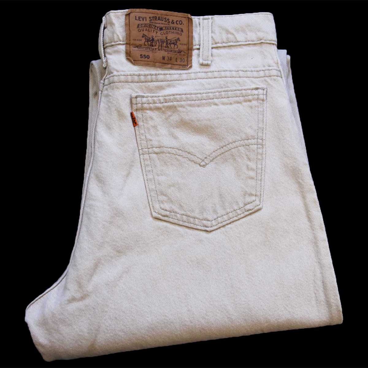 90s USA製 Levi’sリーバイス 550 先染め カラーデニムパンツ ライトカーキ W34 L30★SDP4297
