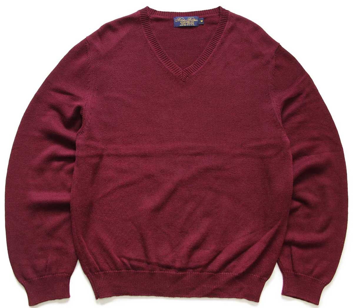 90s USA製 Brooks Brothersブルックスブラザーズ Vネック コットンニット セーター ワインレッド M